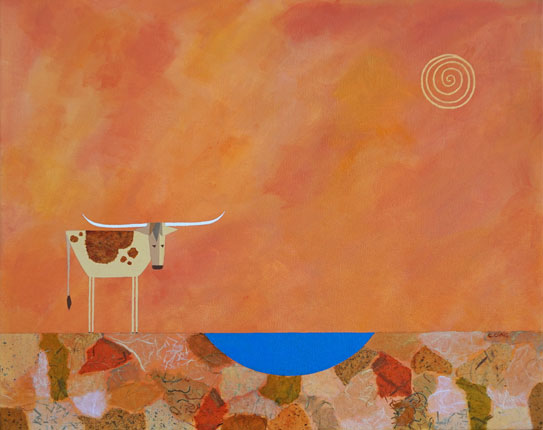 Mixed Media on Gallery Wrap Canvas 16"x20" SOLD Another very simplified depiction of a longhorn at Wimberley's beautiful Blue Hole.